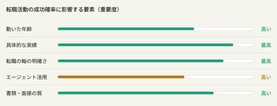 どの年代も「転職の軸の明確さ」と「具体的な実績」が成功率を最も左右する